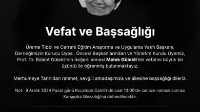 Prof. Dr. Bülent Gülekli’nin değerli annesi Melek Gülekli’nin vefatını büyük bir üzüntü ile öğrenmiş bulunmaktayız.
