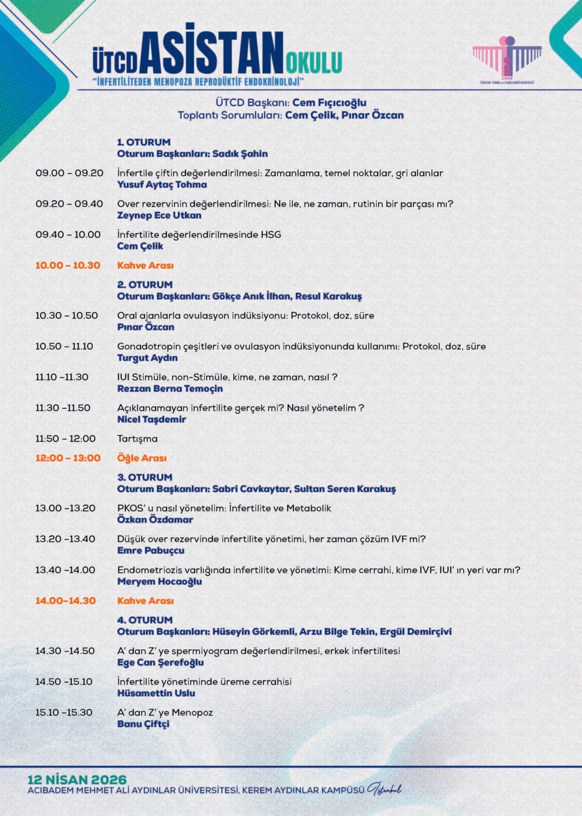 Anasayfa/Duyurular/ÜTCD Asistan Okulu – İnfertiliteden Menopoza Reprodüktif Endokrinoloji Kurs ÜTCD Asistan Okulu – İnfertiliteden Menopoza Reprodüktif Endokrinoloji ÜTCD Asistan Okulu – İnfertiliteden Menopoza Reprodüktif Endokrinoloji12 Nisan 2026Başvuru Formu